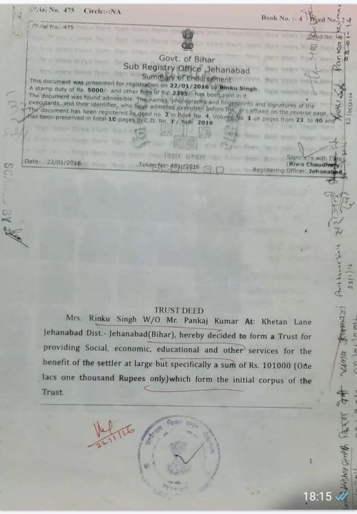 TRUST REGISTRATION COPY